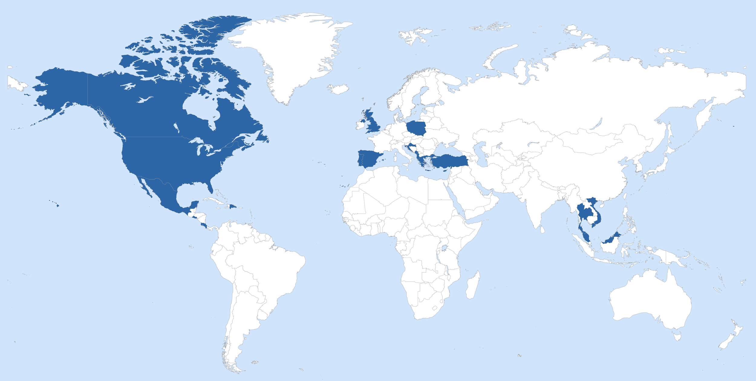 From Canada to Southeast Asia — and counting.
